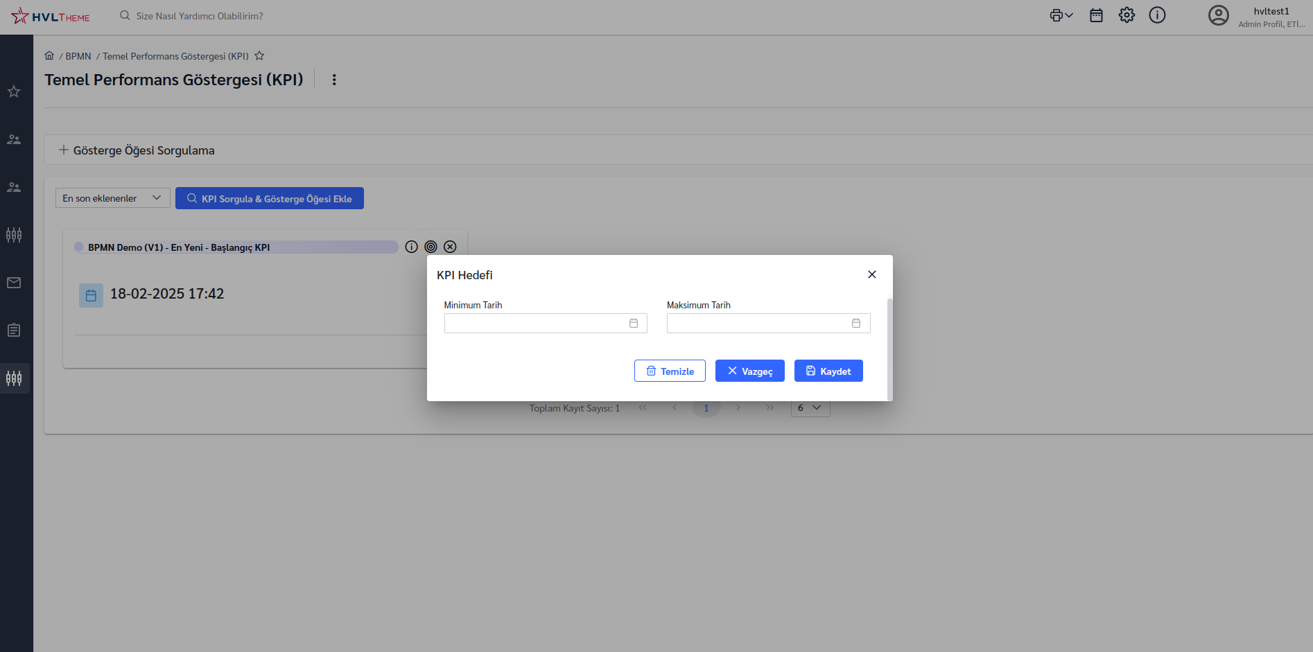 - Sonucun göstege öğesi olarak kaydedilmesi durumunda; analiz sonucu Temel Performans Göstergesi (KPI) sayfasında listelenir.